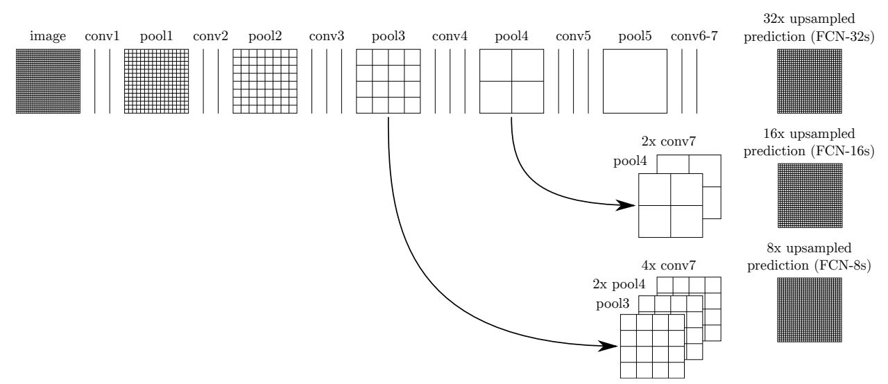 이 과정에서 최종 layer로 1x1 convolution (channel = 21)을 사용해 각 PASCAL classes를 분류하는데 사용했고, 각 coarse output 위치에서 deconvolution layer를 이어붙여, upsampling을 통해 pixel단위 output을 만들었다.