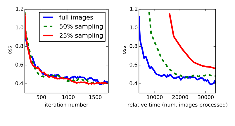 이러한 실험을 통해 sampling이 convergence rate에 큰 차이를 가지지는 않는다는 것을 알 수 있었으나, 배치당 더 많은 개수의 이미지를 담당하게 되기 때문에, 시간이 훨씬 많이 걸린다. 따라서 unsampled, whole image training을 사용한다.