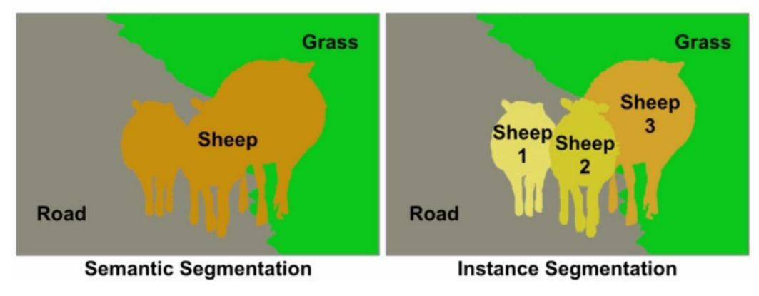 Sementic Segmentation은 Image에 있는 픽셀을 해당되는 Class로 분류하는 것으로, 모든 픽셀에 대해 예측을 진행하므로 dense prediction으로도 불린다. 하지만 Instance Segmentation과는 다르게, 같은 Class 내의 다른 instance들은 구별하지 않는다.