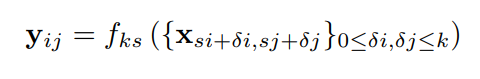 Xij를 특정 레이어의 (i, j)번째 데이터 벡터라고 하고, yij를 다음 레이어라고 했을 때 아래 함수를 살펴보자.