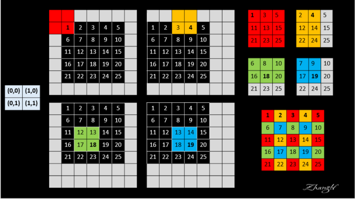 조금 더 일반적인 form으로 설명하면, output이 f 만큼 downsampling 되었다고 하자. 먼저 input을 모든 아래 조건을 만족시키는 모든 (x, y)에 대해서 x픽셀만큼 우측으로, y 픽셀만큼 아래로 이동시킨다.