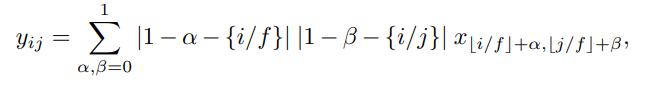 f는 upsampling factor, {}는 fractional part({x} = x - |x|)