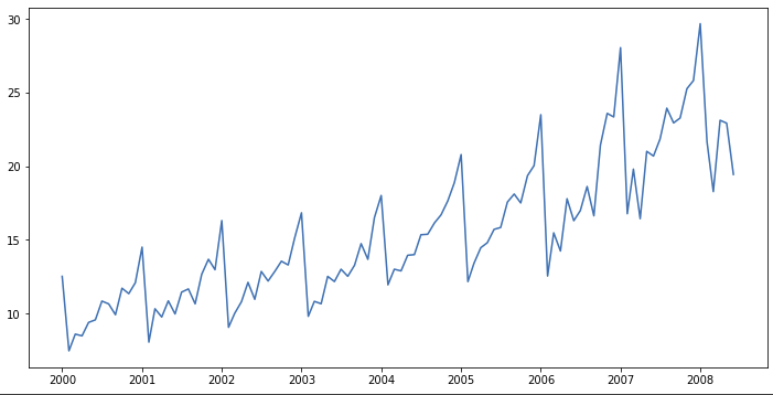 계절성은 특정 행동의 빈도가 안정적으로, 반복해서 나타나는 것이다. 위의 그래프를 보면 1년 주기로 특정한 형태를 반복적으로 띄는데 이러한 데이터를 계절성 데이터(Seasonal Data)라고 한다. 추가로 조금씩 증가하는 양상을 보이는데 이를 추세(Trend)라고한다.
