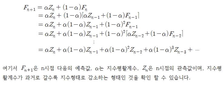 * alpha 는 평활요인(Smoothing factor)라고도 불린다.