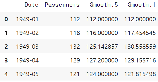 결과는 다음과 같다. 두 번째 Row 만 보더라도, alpha = 0.9인 Smooth.1이 더 현재 값에 가중치를 줬음을 확인할 수 있다.