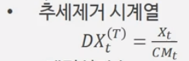 이렇게 얻어낸 $CM_t$를 $X_t$에 나누어 줌으로서 추세가 제거된 시계열을 얻는다.