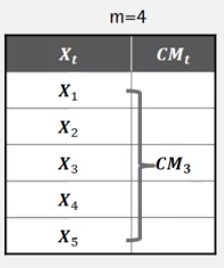 예를 들어, 오른쪽 아래 처럼 $m=4$일 때 $X_3$에 대한 $CM_3$를 구하기 위해서는, $X_1~X_5$의 평균을 구한다.