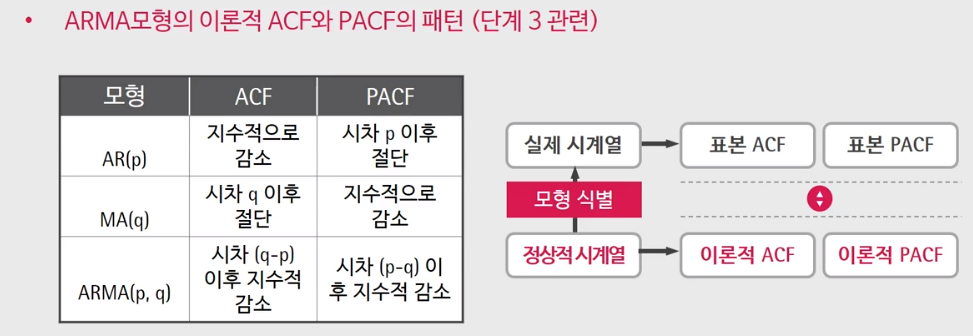 단계 3: 이론적 ACF, PACF를 바탕으로 표본 ACF, PACF와 비교해 ARMA 차수를 구한다.