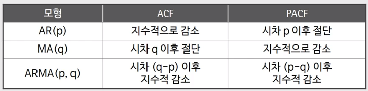 둘다 아니라면 ACF, PACF 중 어떤 것이 상대적으로 절단패턴에 가까운지를 확인하는 것이 용이할 것 같다.